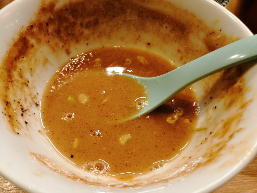 それにしても300gだとつけ汁も余裕で余るんですが、思い起こせばこの店に来出した頃はいつもつけ汁ギリギリだったんですよね。なんで最近は余るのか謎です。