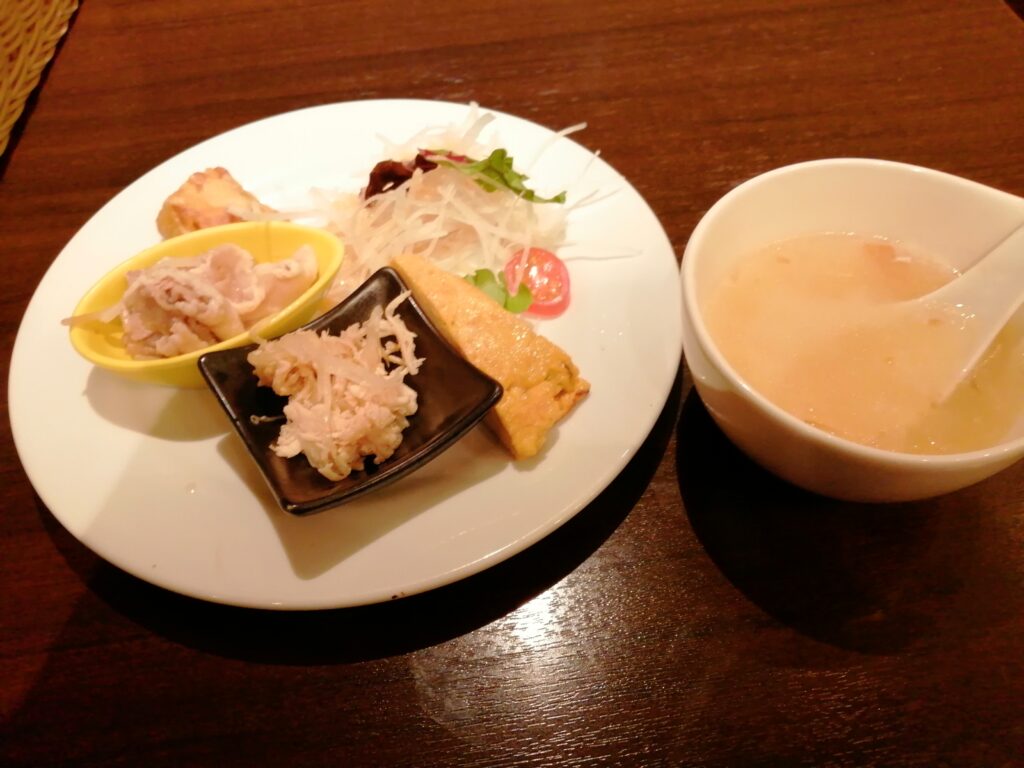 まずは前菜とスープの登場。