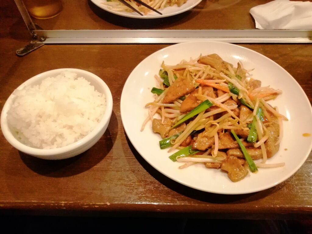 今日は最初に遥華に行って日替わりがこの前食べて美味しかった「豚肉と野菜と木耳と玉子の炒め」だったので