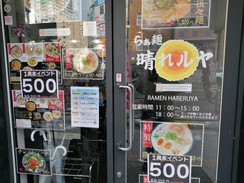 なんと大国町の「らぁ麺 晴れルヤ」で全品500円とのこと。